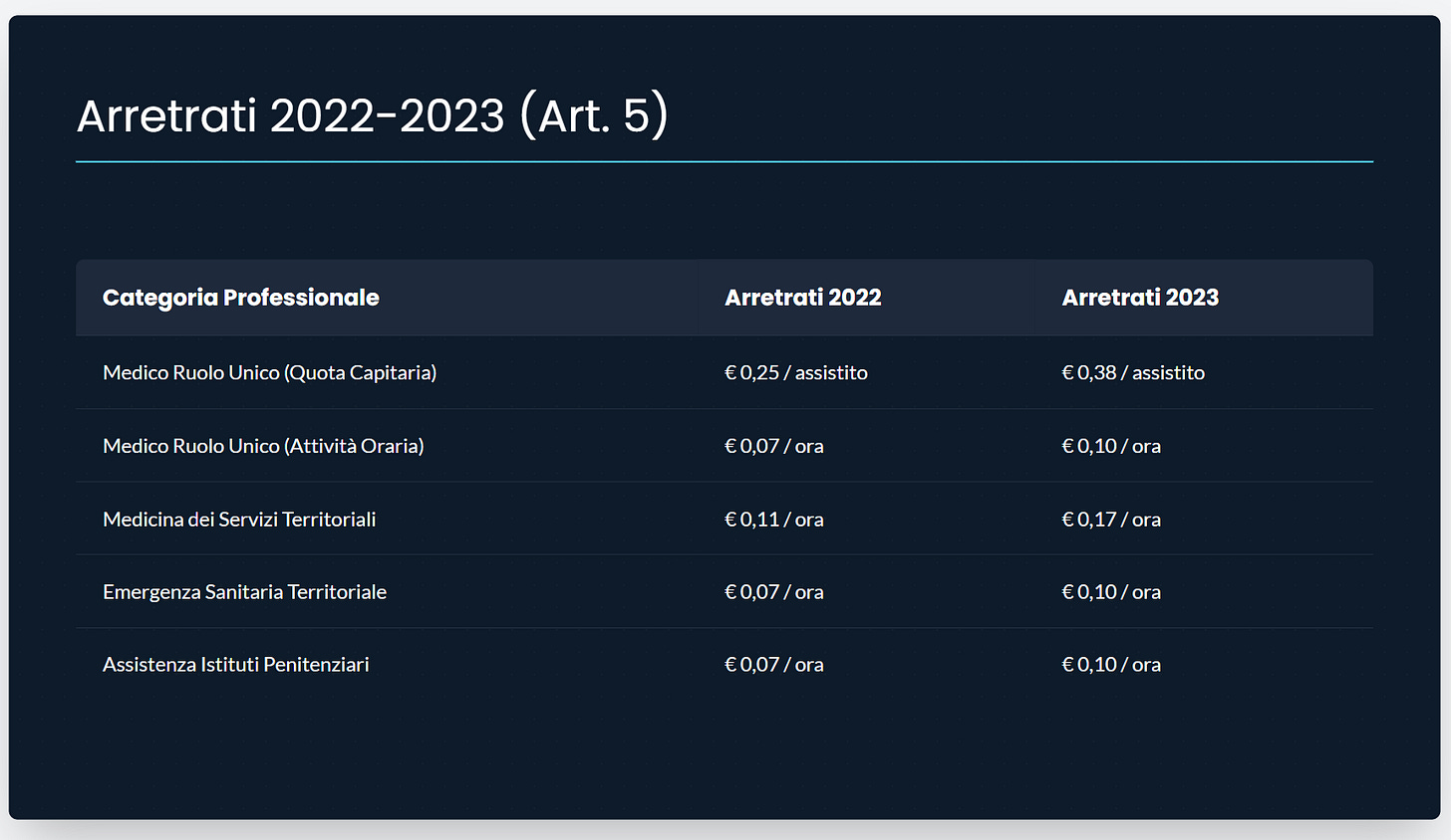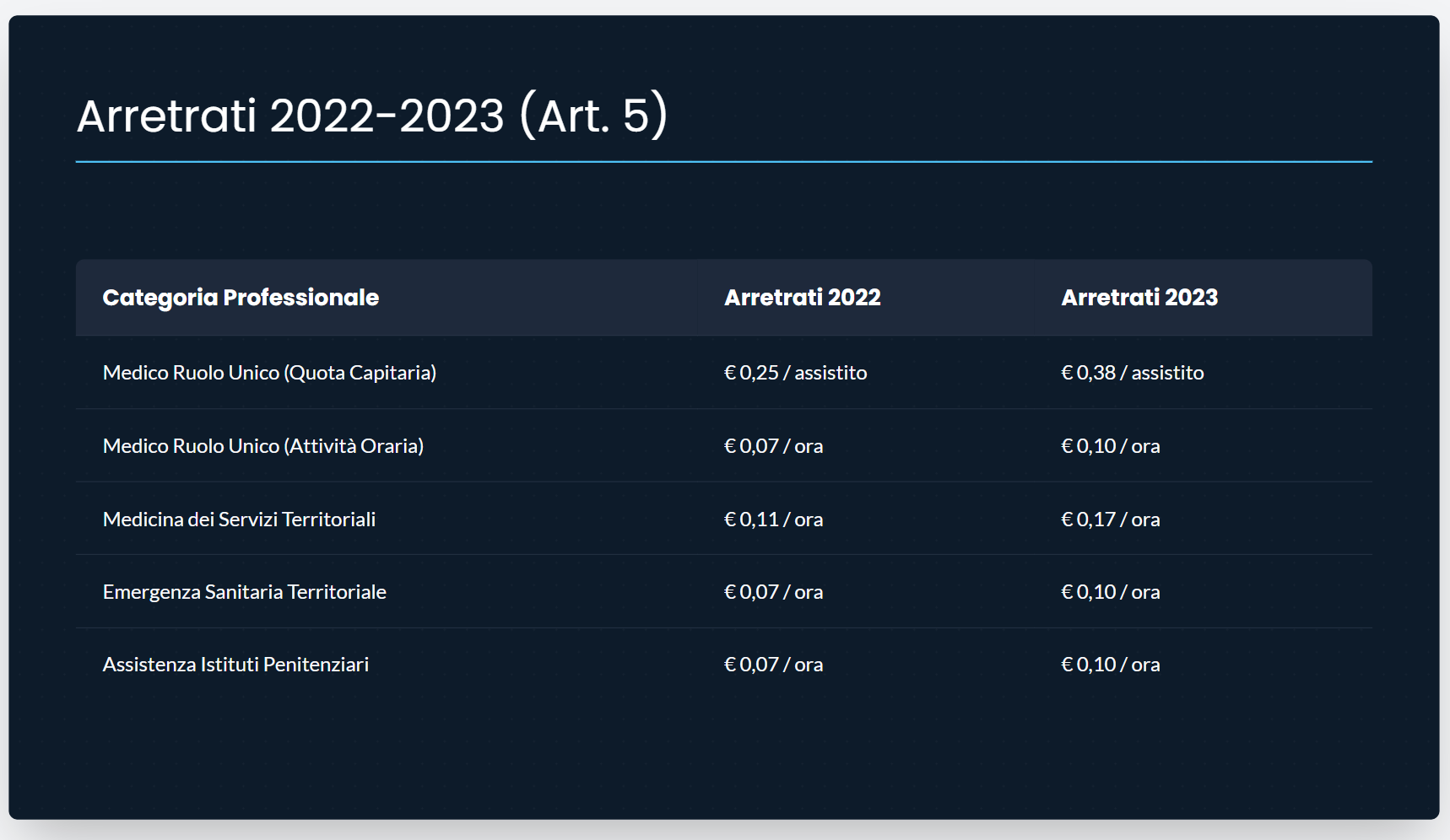 la tabella degli arretrati 2022-2023 (Art. 5), perfettamente formattata e pronta per essere discussa in aula;