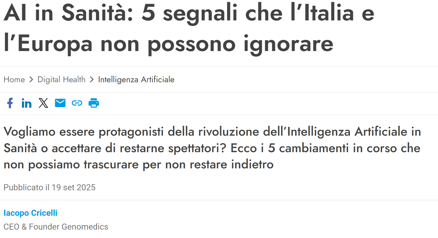 Leggi l’articolo: https://www.healthtech360.it/salute-digitale/intelligenza-artificiale/ai-in-sanita-5-segnali/