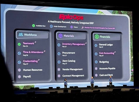EpicOps: un ERP healthcare‑native (workforce, materiali, finanza) già integrato nell’ecosistema.