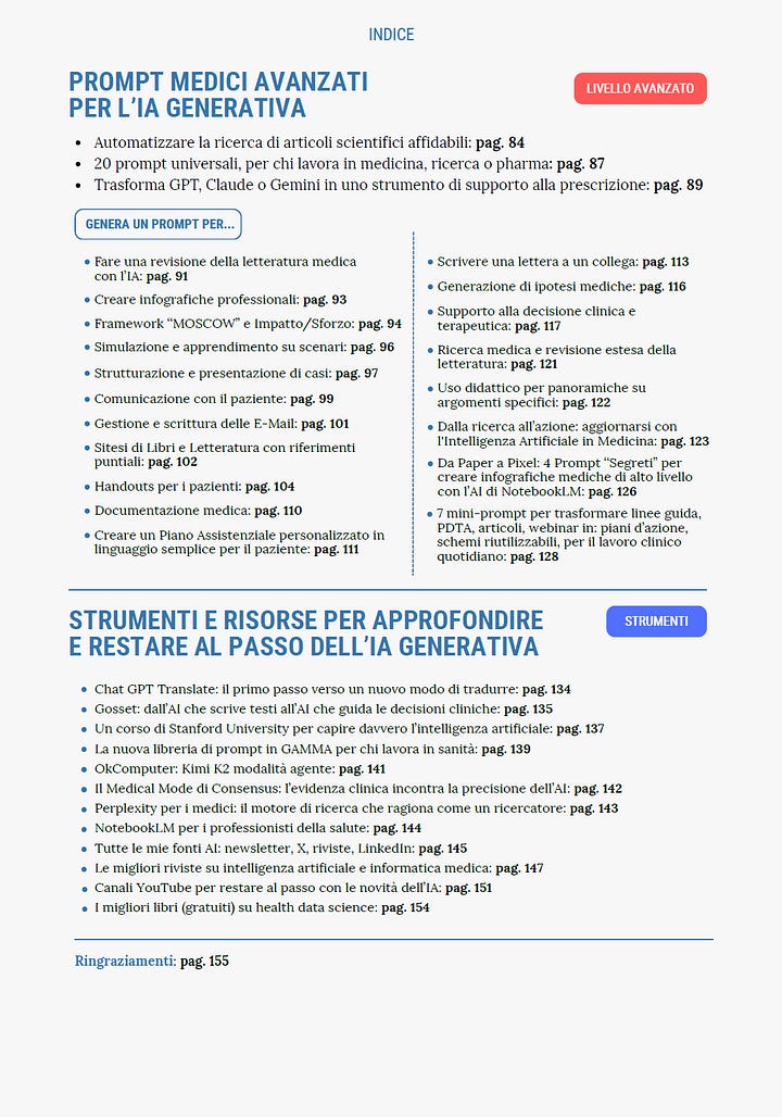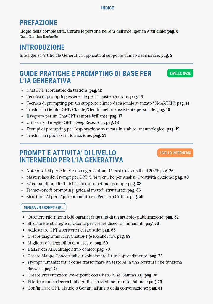 È un manuale operativo pensato per clinici, ricercatori, manager sanitari e professionisti della salute che vogliono integrare l’AI nei propri processi di lavoro senza perdere metodo, senso critico e responsabilità.