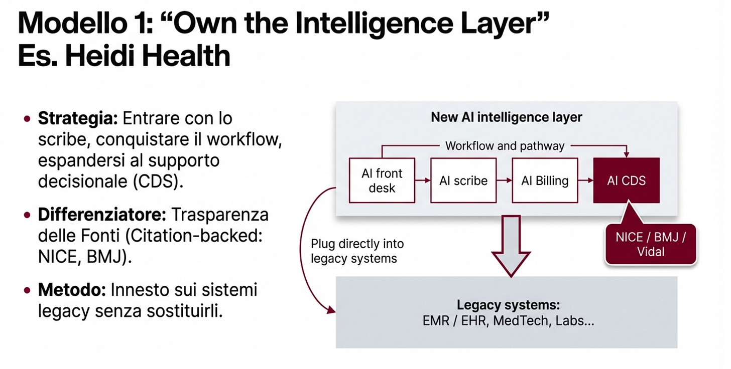 Heidi sta facendo la strada “dal basso verso l’alto”. Prima scribe, poi altre funzioni, ora supporto clinico con citazioni. È veloce e “leggera”, perché non deve possedere tutto il resto. Però per contare davvero deve integrarsi bene con i sistemi che i medici già usano ogni giorno.