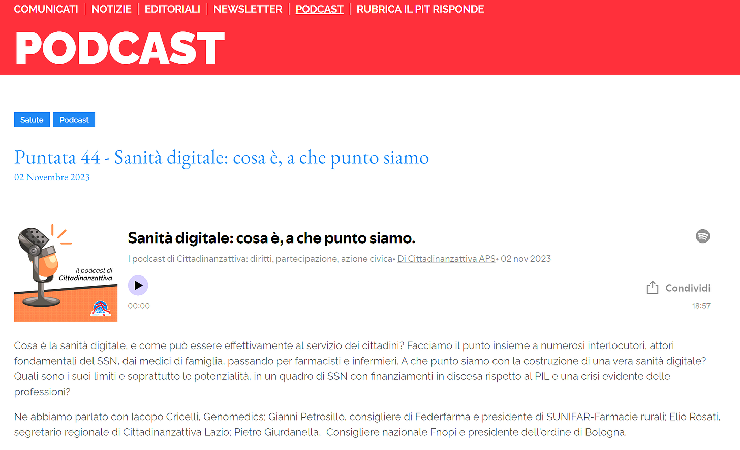 Puntata 44 - Sanità digitale: cosa è, a che punto siamo, il mio intervento al minuto 4:05