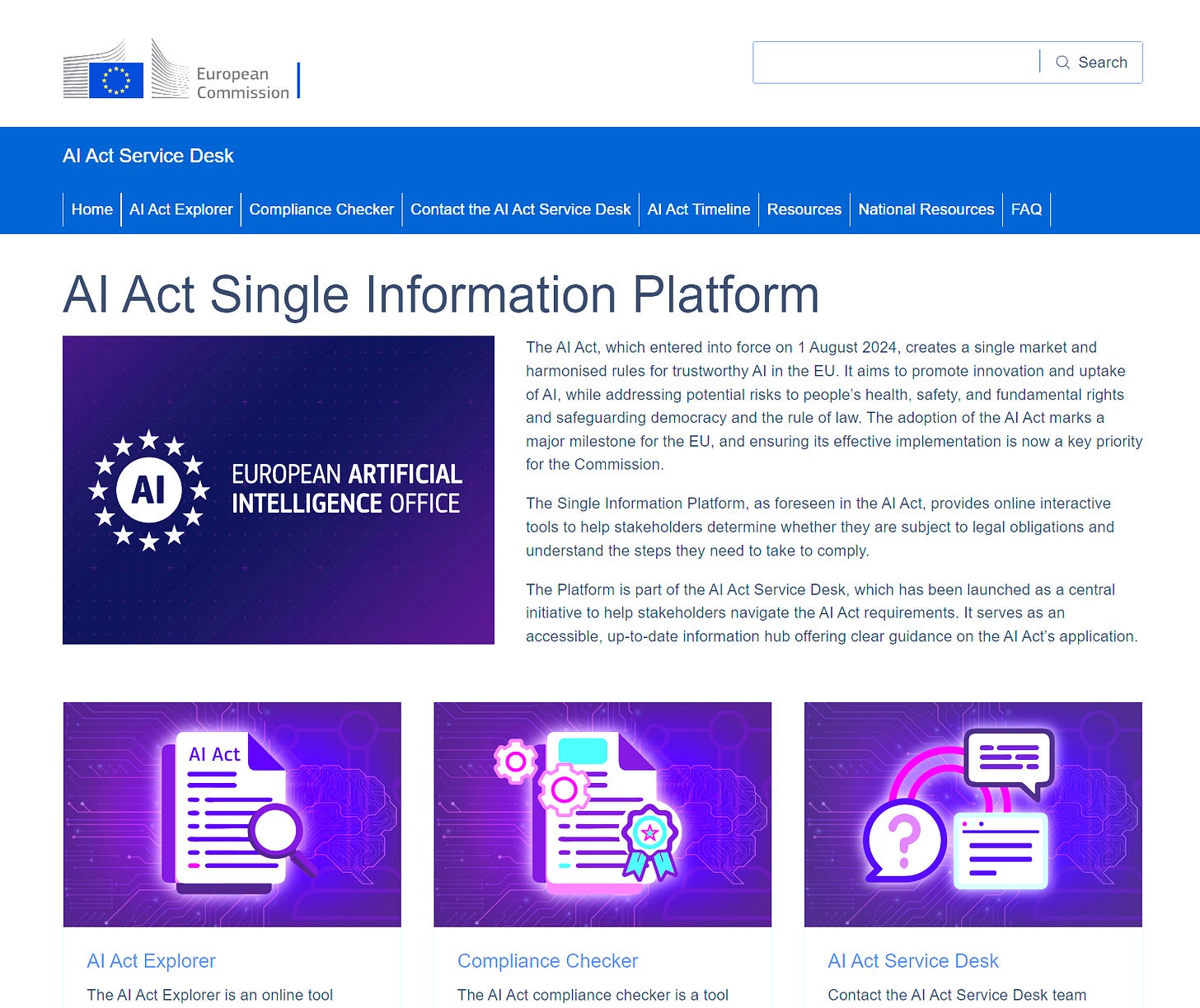 La European Commission ha attivato la nuova piattaforma ufficiale per l’AI Act: https://ai-act-service-desk.ec.europa.eu/en