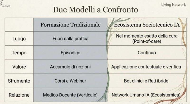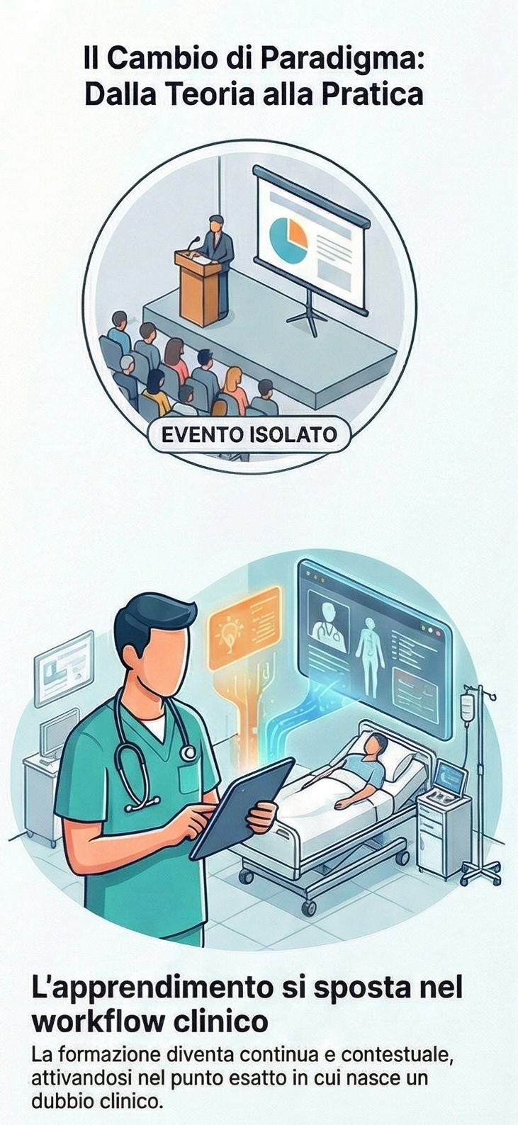 Sta emergendo un modello nuovo, in cui l’apprendimento professionale diventa continuo, contestuale e integrato nel workflow clinico.