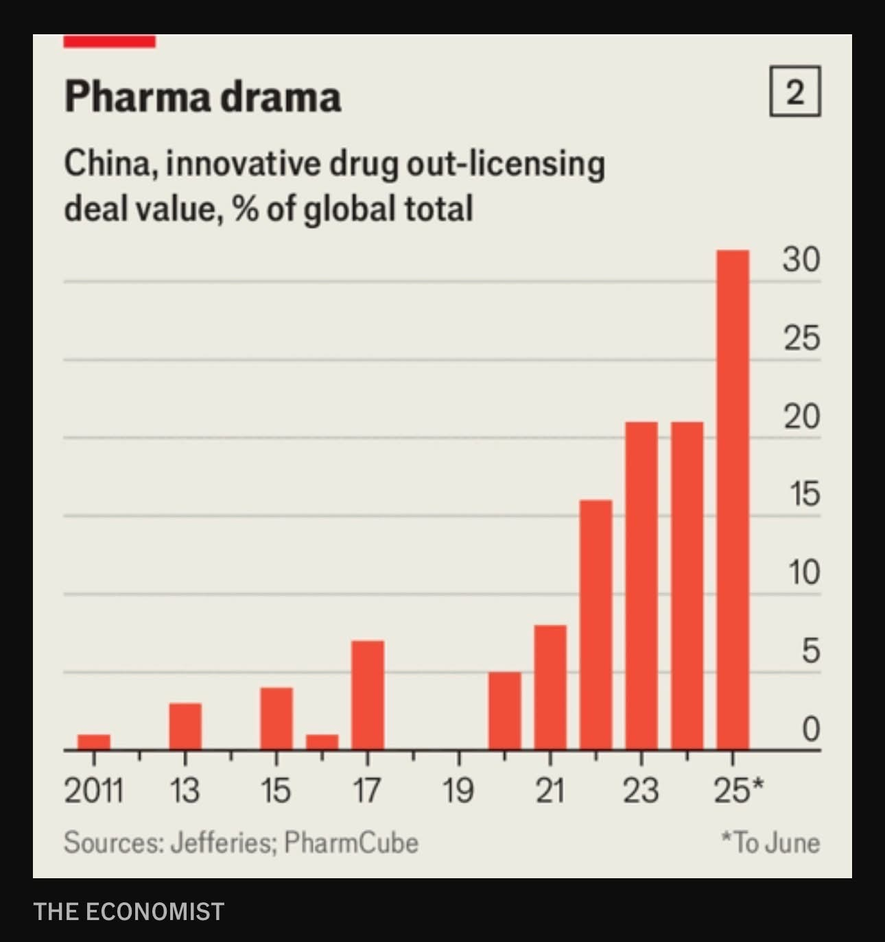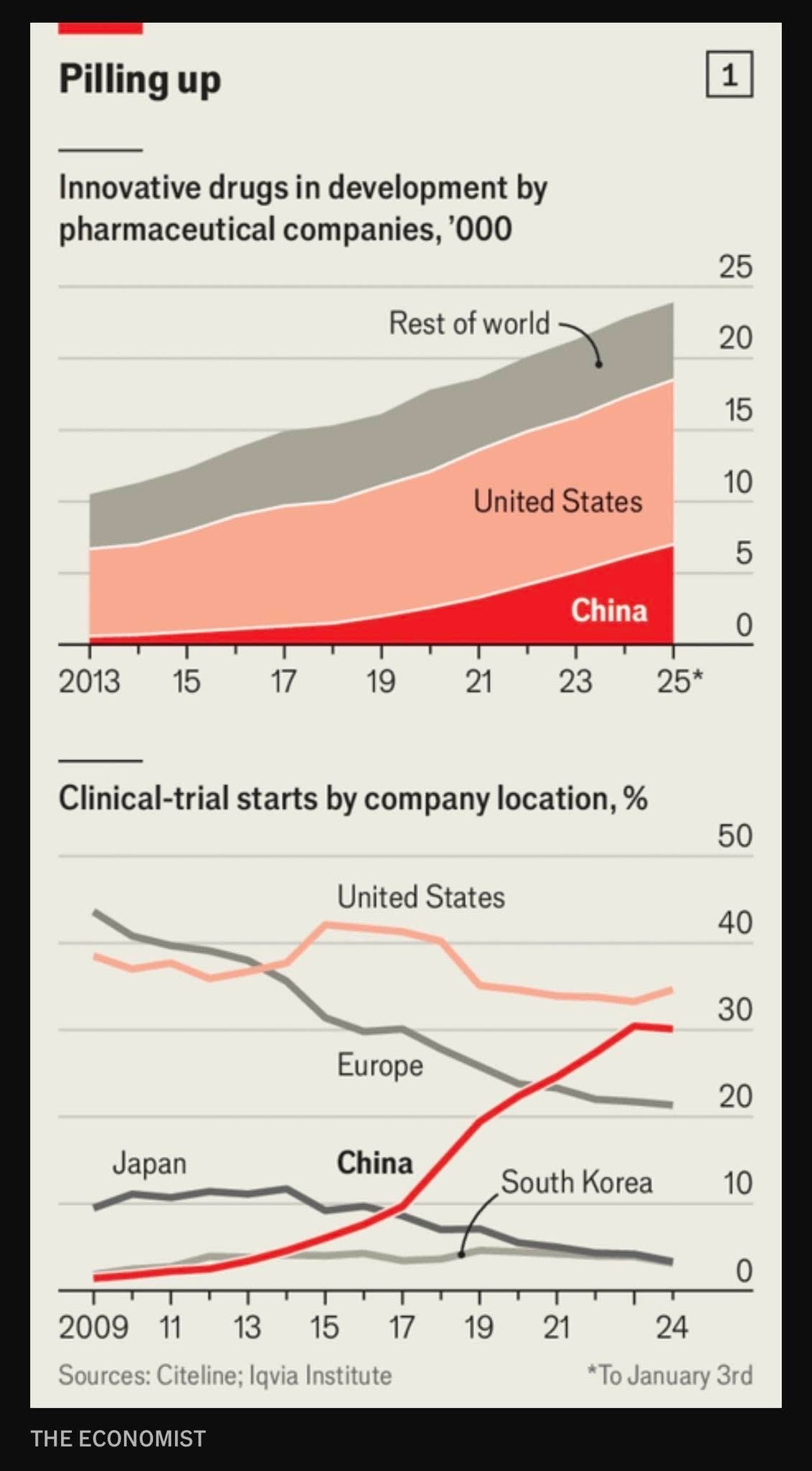 Fonte primaria: https://www.economist.com/china/2025/11/23/chinese-pharma-is-on-the-cusp-of-going-global?fbclid=IwZnRzaAO9B8JleHRuA2FlbQIxMQBzcnRjBmFwcF9pZAo2NjI4NTY4Mzc5AAEe2f7nbDRINzTElQWCNdUJOFMLCoUzgbj0HHl3E-GcS2HJDaVJuSIBqOdPIBg_aem_cHNzQebL0DkExe7gZyUAhQ