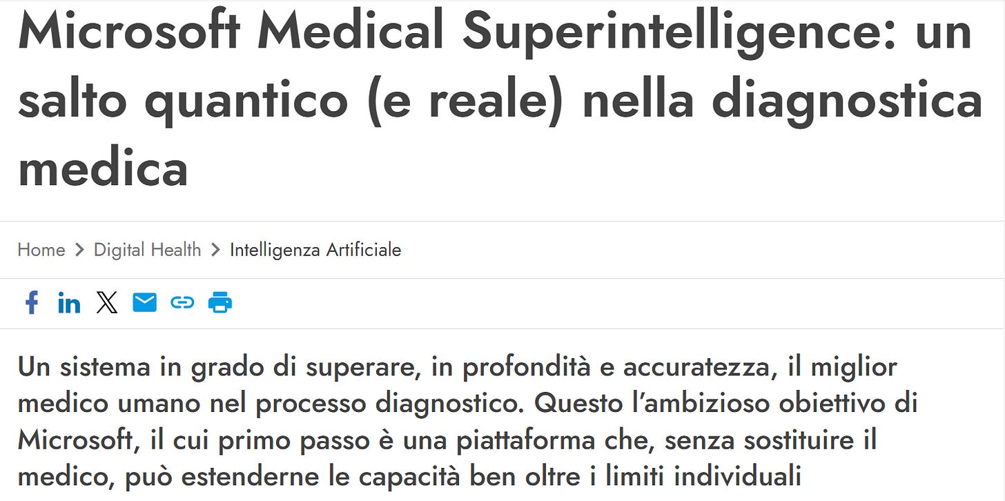 Leggi l’articolo completo: https://www.healthtech360.it/salute-digitale/intelligenza-artificiale/microsoft-medical-superintelligence/