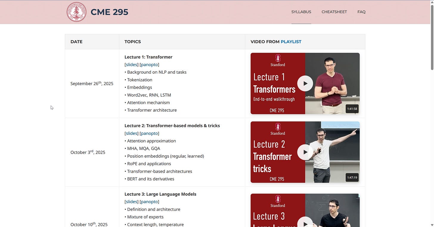 https://cme295.stanford.edu/🎥 Video delle lezioni – con slide e spiegazioni passo-passo
