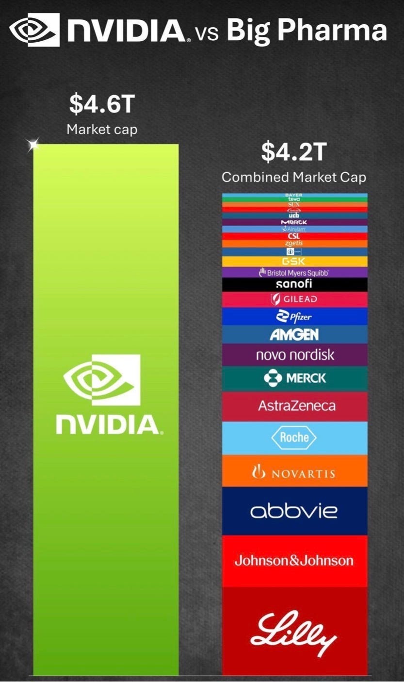 Un solo grafico. Una domanda scomoda. NVIDIA oggi vale più di tutta la Big Pharma messa insieme.