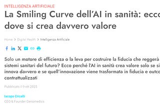In questo articolo su HealthTech360 - Nextwork360 esploro come la SmilingCurve dell’AI ci aiuti a comprendere dove si genera il vero valore nella sanità…